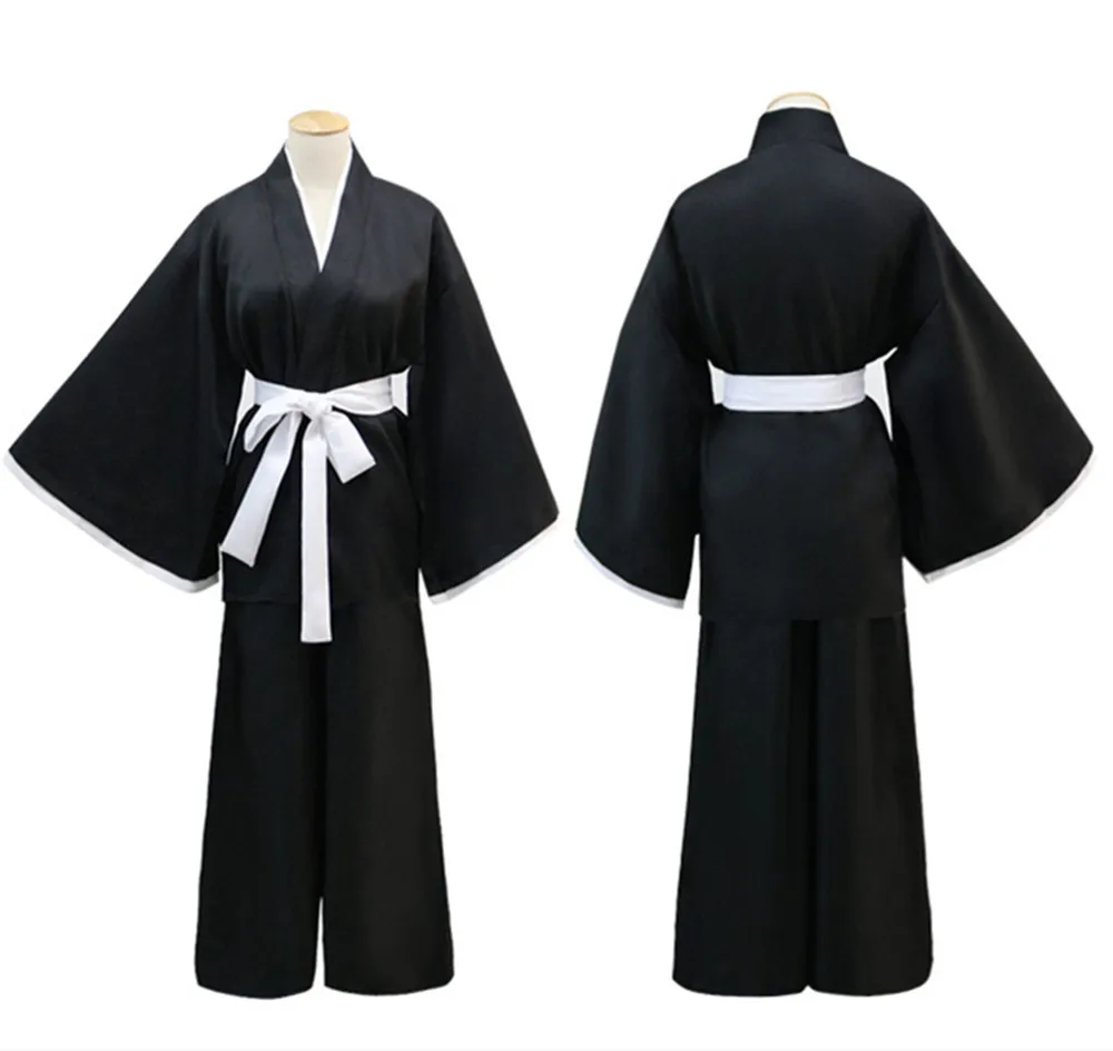 Product Description: This Anime Bleach Cosplay Rukia Kuchiki Kimono Set includes top, pants, and belt.